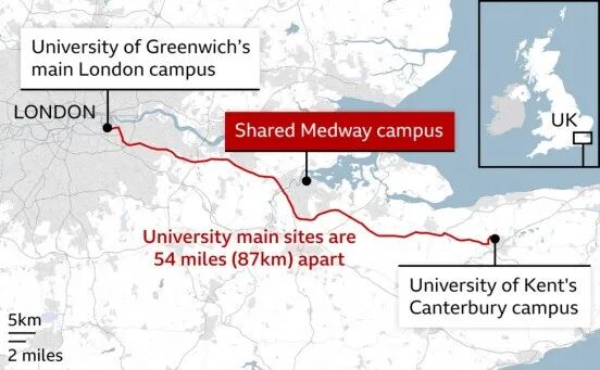 据了解,此次合并将整合肯特大学与格林威治大学的全部校区及教学资源,构建横跨多区域的办学网络,覆盖伦敦与英格兰东南部地区。具体涉及校区包括: