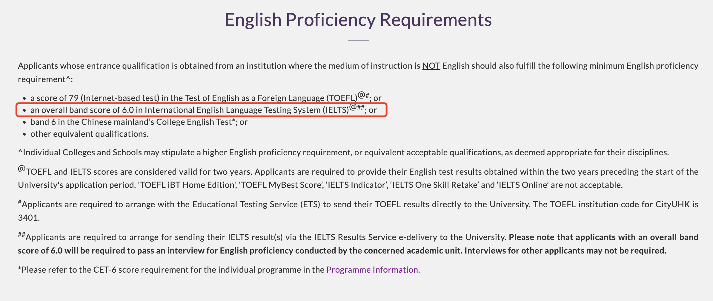 此外,香港理工一直将雅思6.0作为硕士申请的基本语言门槛,而城大此次调整语言要求后,无疑是为城大在即将到来的申请季中增添更多竞争力。