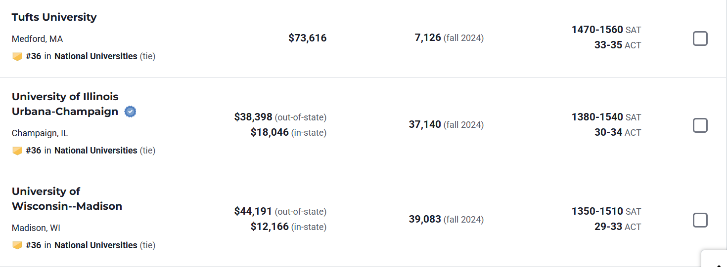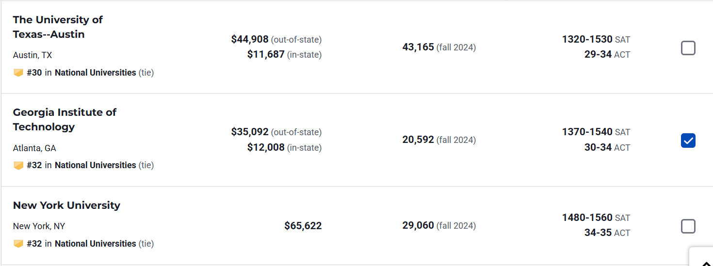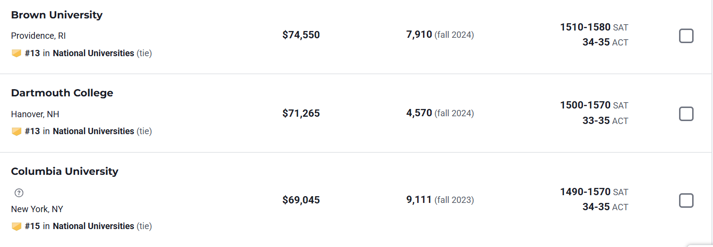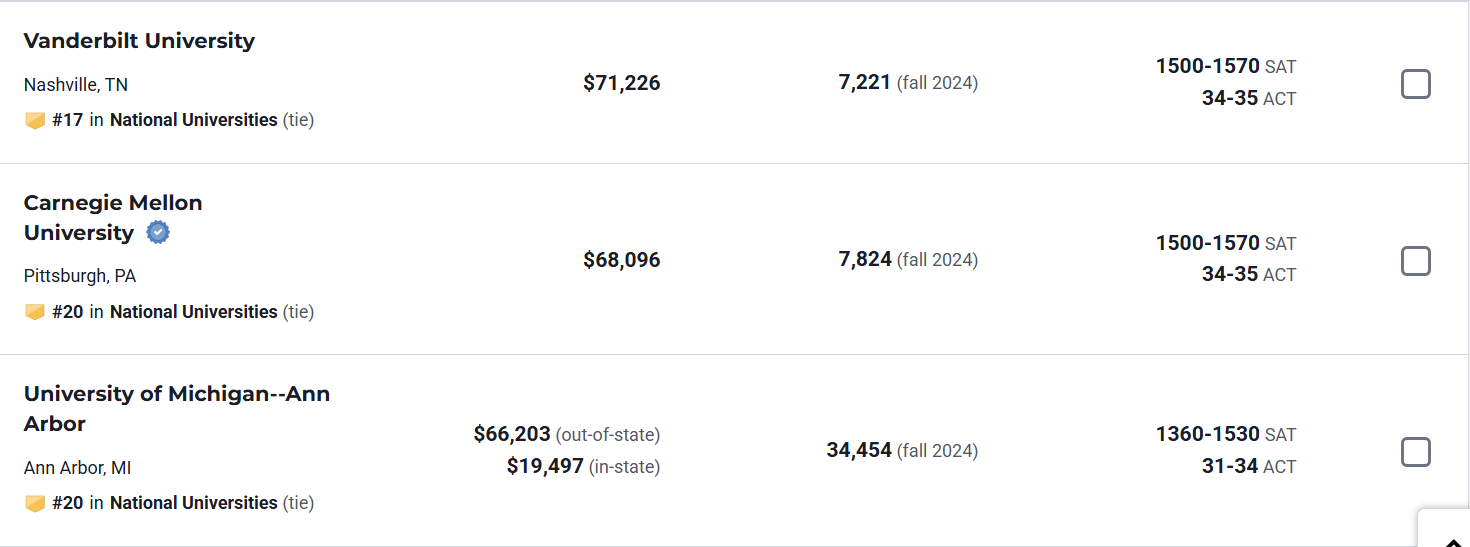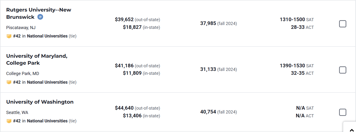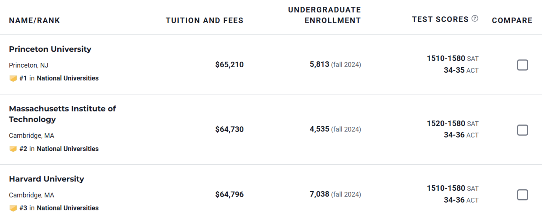 * 完整排名详见官网:https://www.usnews.com/best-colleges/rankings/national-universities