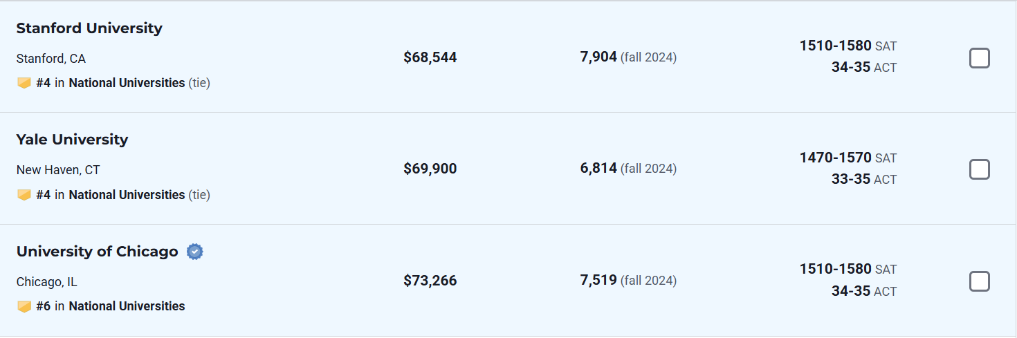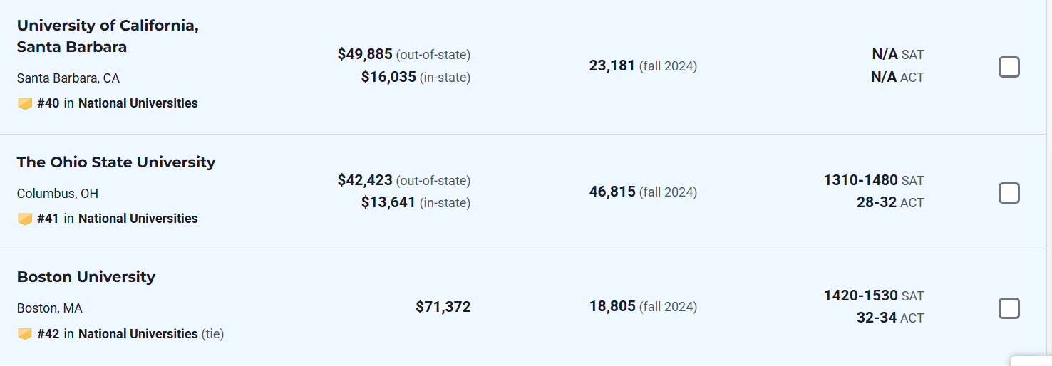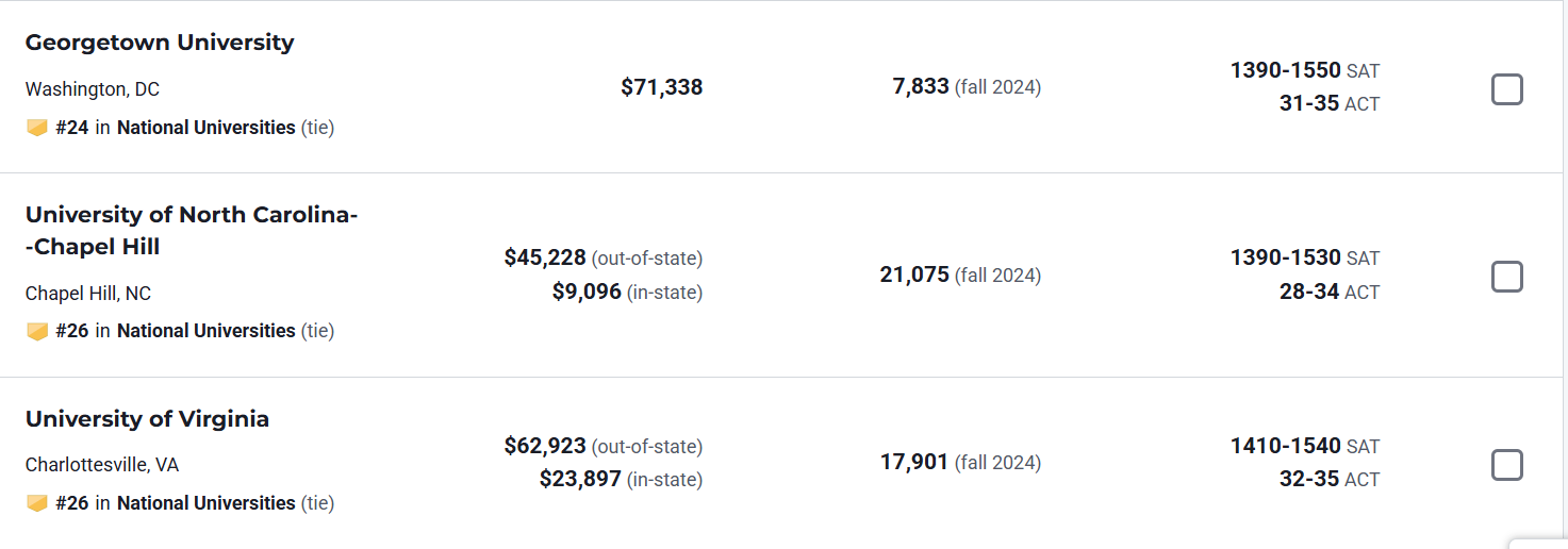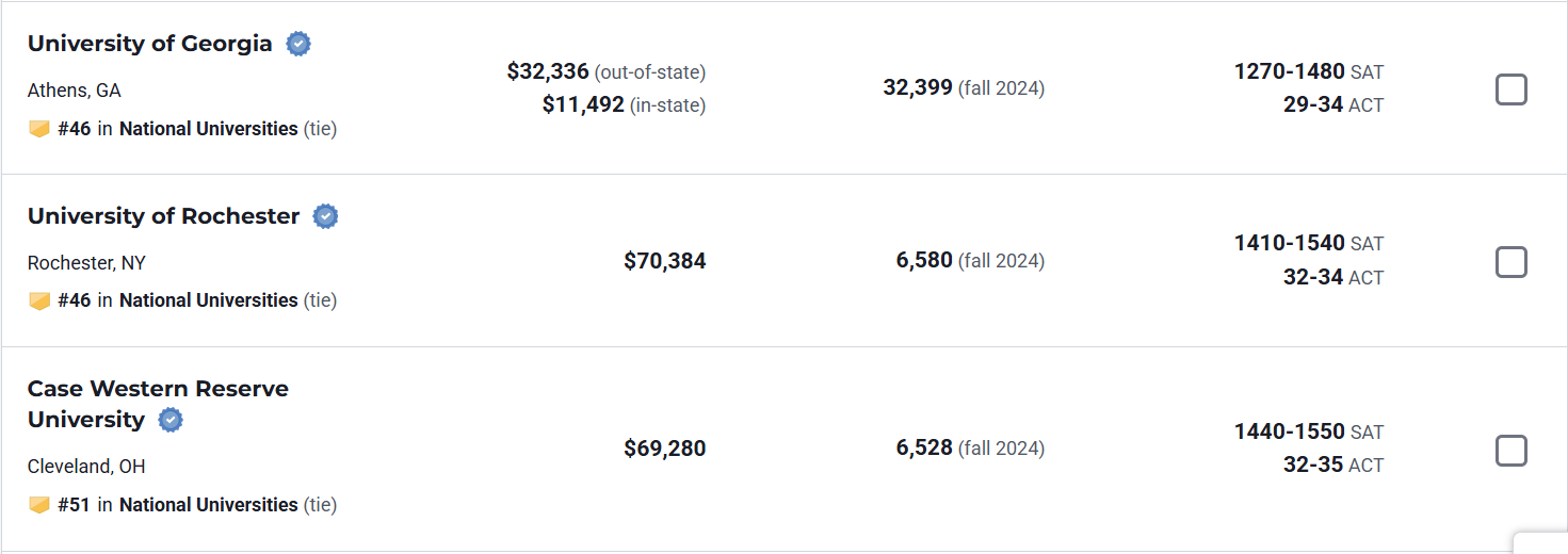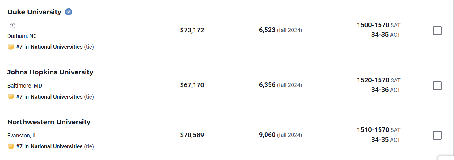 * 完整排名详见官网:https://www.usnews.com/best-colleges/rankings/national-universities