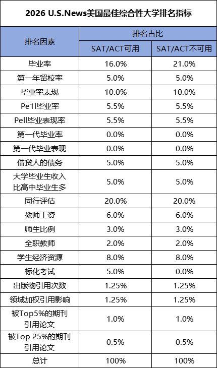 今年的指标和权重与去年差不多,因此总体来看这次的全美最佳综合大学排名整体较为稳定,但部分学校排名出现小幅波动。