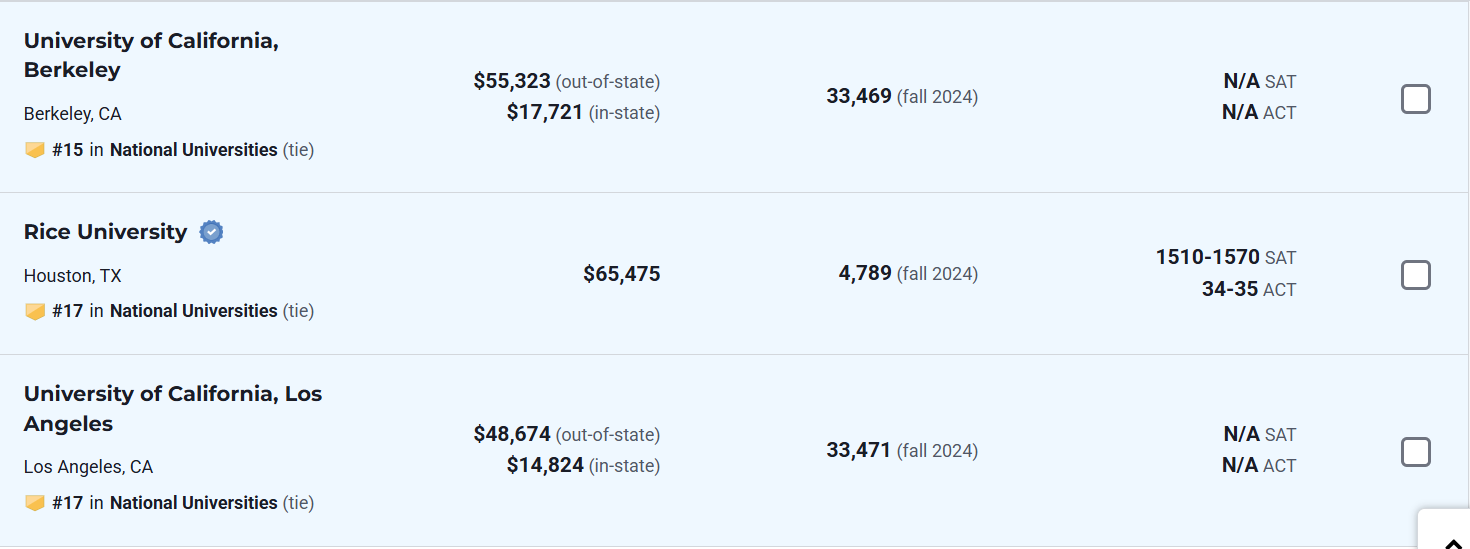 · 加州大学系统大洗牌:UCB上升至15名;UCLA下降至17名。