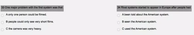 判断题(T/F/NG,Y/N/NG),以往在纸笔考试中,考生们需要分辨清楚,而在机考当中你只需要在你认为正确的描述前面打钩即可,省去了填空的麻烦。而且每个已作答的题目题号下面会自动出现一个横杠,防止漏题。