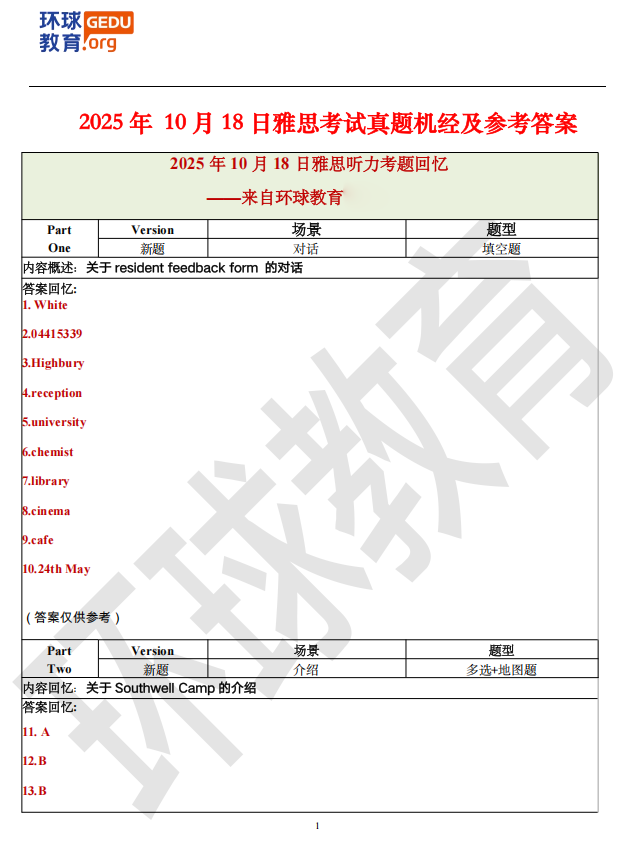 环球教育保定雅思培训学校提供:2025年10月18日雅思考试真题回忆机经含范文!关注环球教育保定分校(bdgedu)微信公众号,获取更多保定雅思资讯。