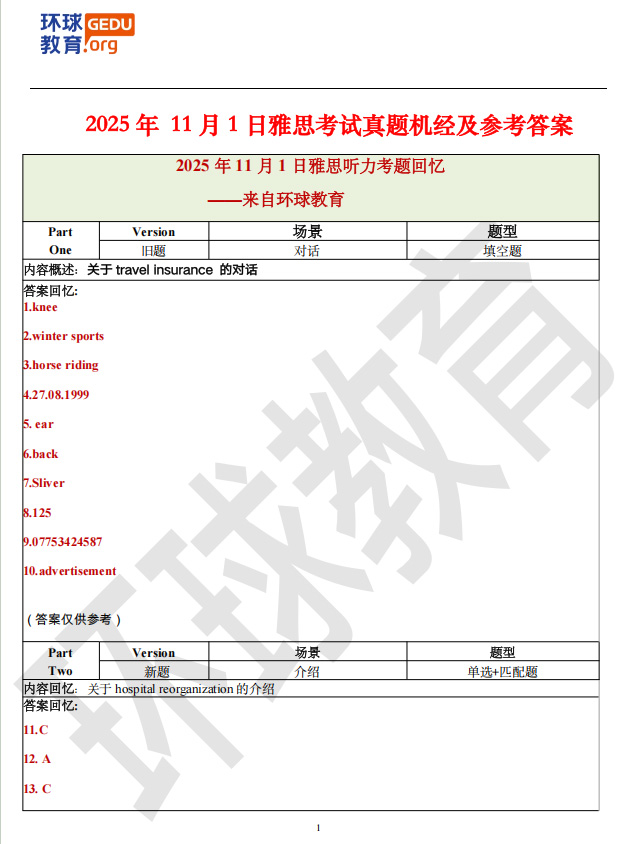 环球教育保定雅思培训学校提供:2025年11月1日雅思考试真题回忆机经含范文!关注环球教育保定分校(bdgedu)微信公众号,获取更多保定雅思资讯。
