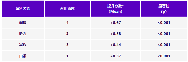 从数据表现来看,阅读单科重考提分幅度最大,重考后平均提升0.67分,是考生“短时间突破分数瓶颈”的优先选项。口语单科重考的考生占比最高,这不仅与口语在整体成绩中的“短板效应”有关,更反映出考生对于沟通表达能力提升的迫切需求。