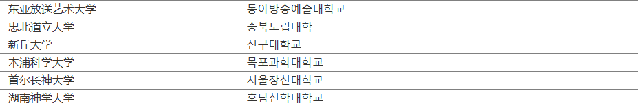 🔻韩国被移除院校6所(共认可261所)